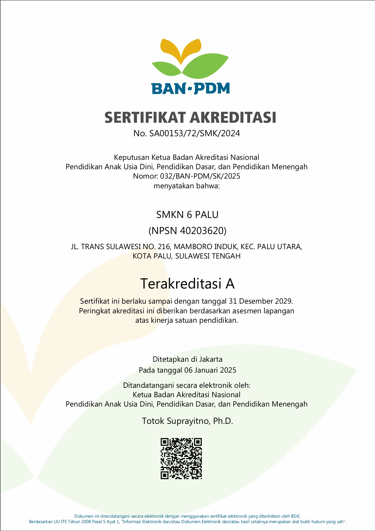 SELAMAT DATANG DIWEBSITE SMK NEGERI 6 PALU, SMK BISA, SMK HEBAT, MOSIAMASEI